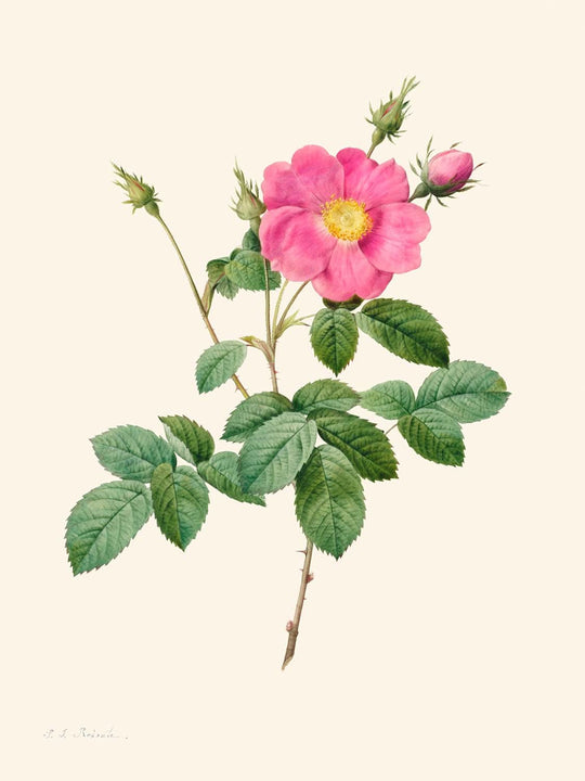 Cabbage Rose, first published in 1817, is one of the exquisite botanical illustrations by the renowned artist Pierre-Joseph Redouté. Celebrated as one of the greatest botanical illustrators, Redouté's detailed depictions continue to captivate botanical enthusiasts and art lovers alike.
