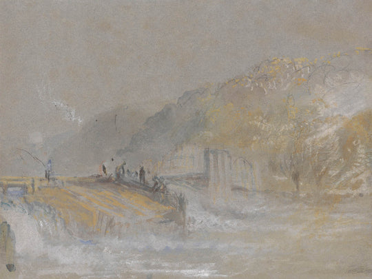 Foul by God: River Landscape with Anglers Fishing From a Weir by Turner, 1830