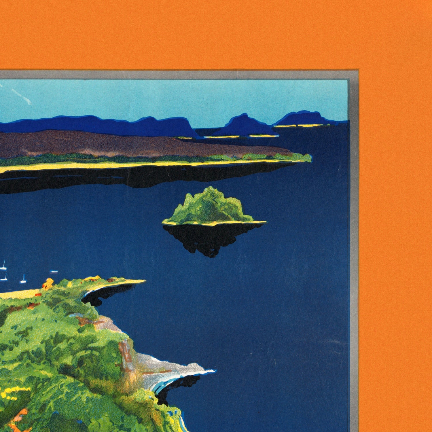 Peter Smith Templeton was an Australian commercial artist active during the mid‑20th century, part of a generation that helped define the visual language of Antipodean travel—bold color fields, simplified forms, and optimistic, sunlit compositions. Working in an era when tourism boards and railways commissioned eye-catching lithographs, Templeton’s posters balanced graphic clarity with a painterly sense of place, making the faraway feel tantalizingly close.