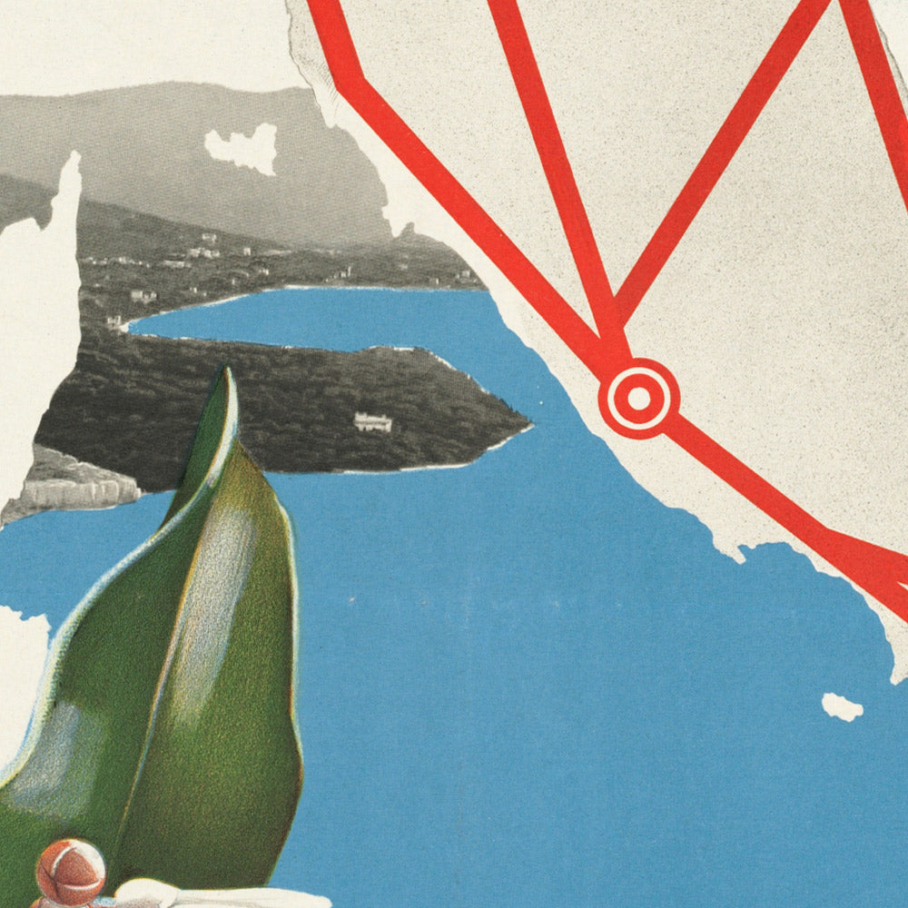 Michahelles stands among the innovators who advanced Italian graphic art between the wars, moving fluidly between fashion, industrial design, and commercial posters. His work—steeped in streamlined geometry and impeccable typography—helped define the visual language that introduced Italy to international travelers: modern, polished, and unmistakably Mediterranean. In this poster, that voice is confident and clear.