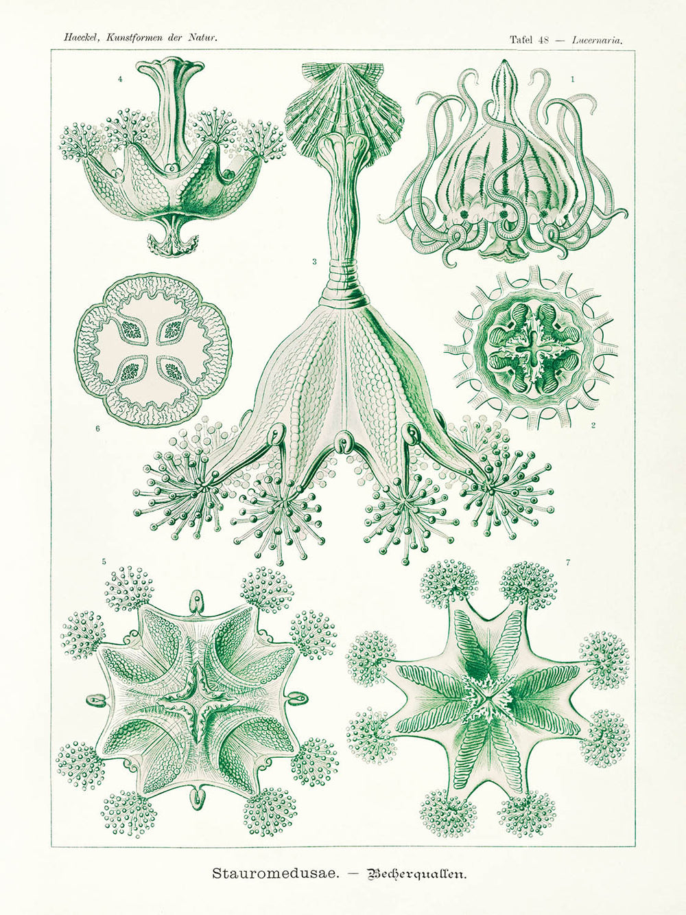 Star Shaped Jellyfish (Trachomedusae Kolbenquallen) by Ernst Haeckel, 1904