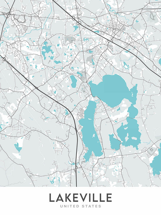 Overall, this map of Lakeville, Massachusetts, is a must-have for anyone who appreciates modern design, cartography, and the beauty of New England. Its stunning visuals and attention to detail make it a captivating piece of art that will add a touch of sophistication to any home or office.