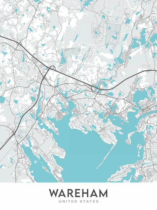 This original creation by The Unique Maps Co. features unique cartography, modern design, and a striking color palette that will complement any home décor. The map is meticulously crafted to provide an accurate and visually appealing representation of Wareham, making it a perfect addition to any study, library, or living space.