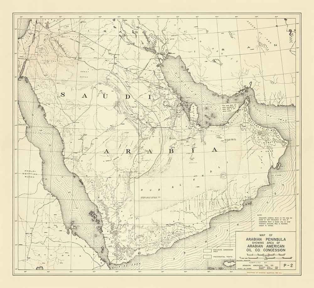 Old Aramco Map, 1953: First Arabian American Oil Company Map