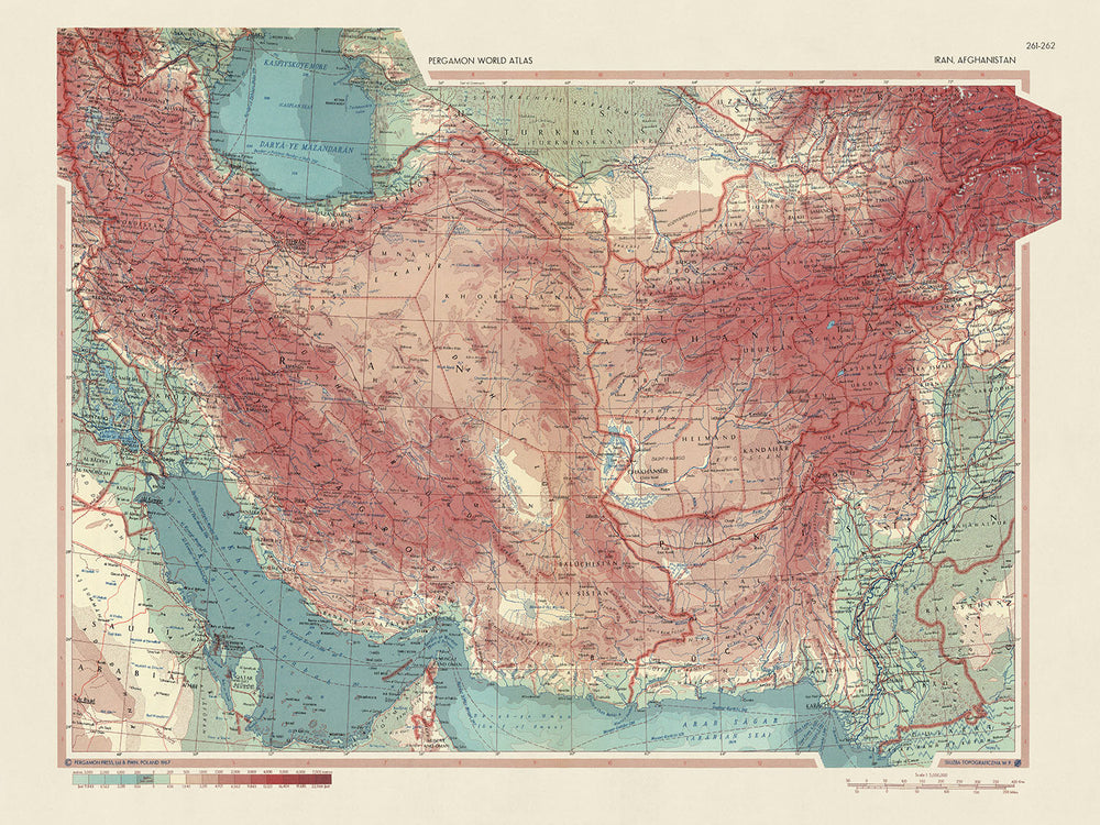 Old Map of Iran and Afghanistan, 1967: Caspian Sea, Persian Gulf, Western Pakistan