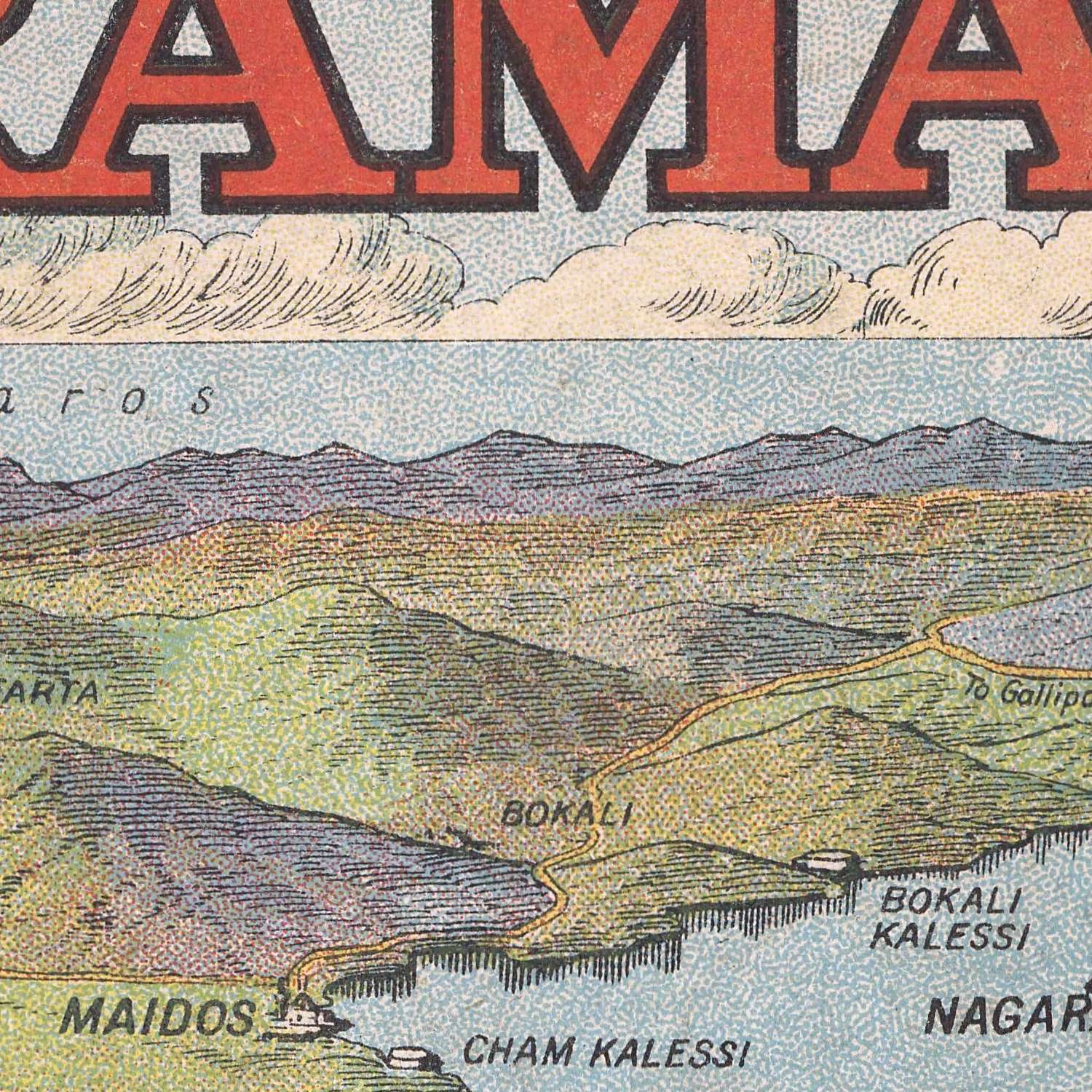 The London Geographical Institute specialized in translating complexity into clarity, and here its editorial craft is on full display. Produced for a wartime readership hungry to situate headlines on a real landscape, the map exemplifies the Institute’s distinctive blend of precision and theatre—color-washed relief to cue elevation, crisp coastal contours, and a perspective that gathers miles of broken country into a single intelligible view. As part of the Daily Mail War Panorama series of twenty views and maps, it functioned as both pedagogy and public service, placing strategic context within reach of kitchen tables while preserving a contemporaneous cartographic record of one of the war’s most fraught undertakings.