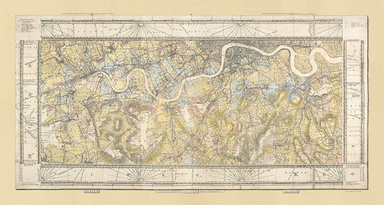This map has many interesting details - notably, the exact use of almost every field (of which there were many in 1799!) 20 miles around London. Look at the key in the top left of the map and see what each of the colours means.
