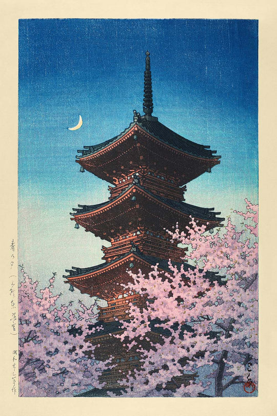 An illustration of the shrine under the auspicious cherry blossom season, this creation makes an exceptional gift for various occasions, including housewarmings, birthdays, or as a thoughtful gesture on Mother's or Father's Day. The elegance and tranquility encapsulated in Hasui Kawase's work promises to captivate and enchant any recipient, making it a cherished addition to one's home or office space.