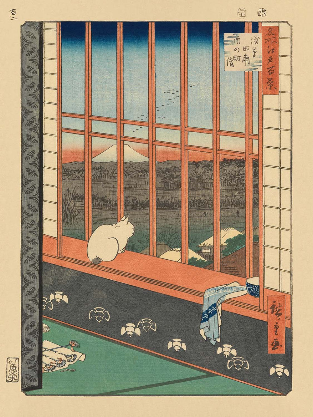 Cat on Windowsill (Watching the Festival) by Utagawa Hiroshige, 1857