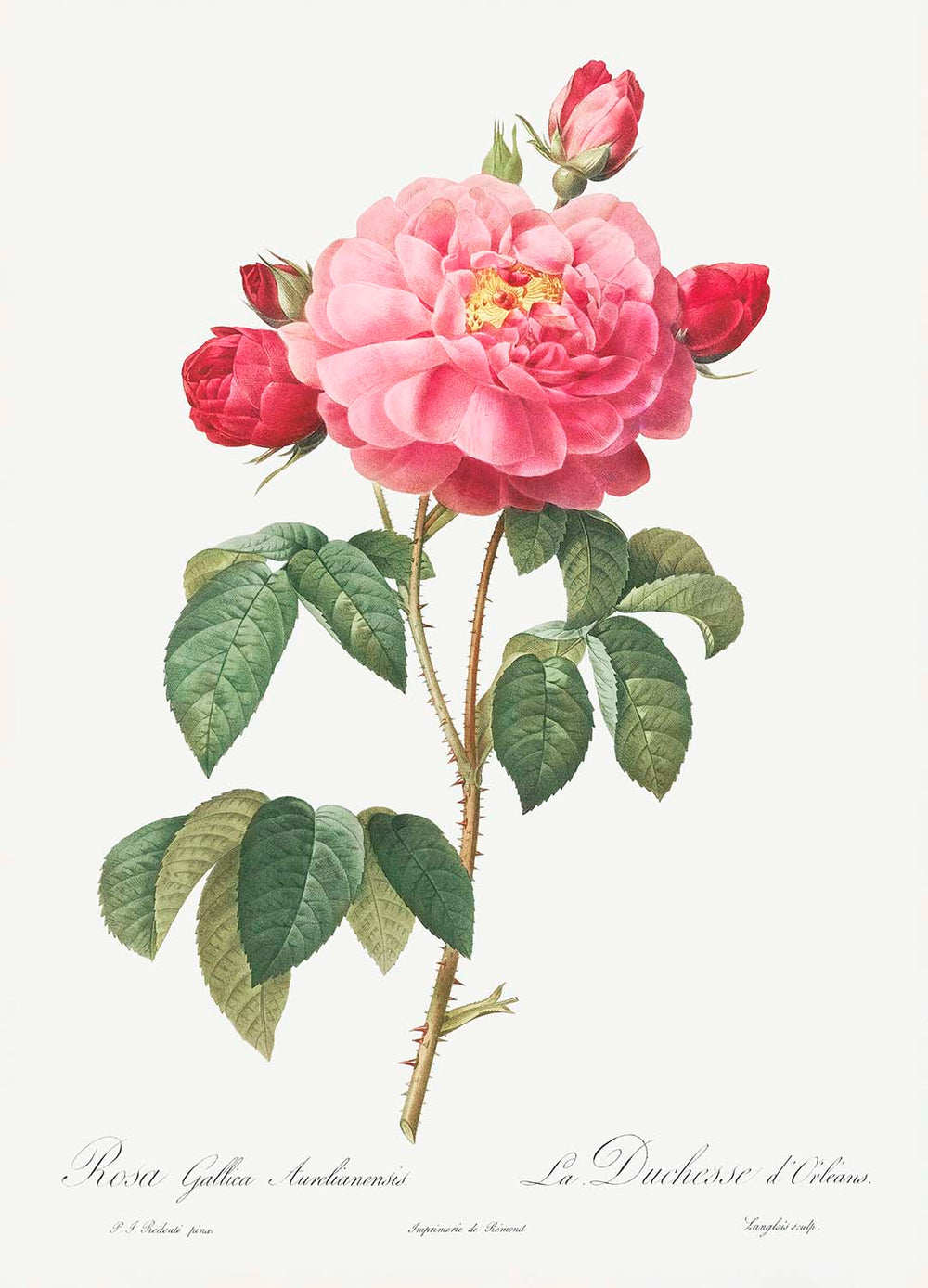 Gallic Rose Botanical Illustration by Pierre-Joseph Redouté, 1817
