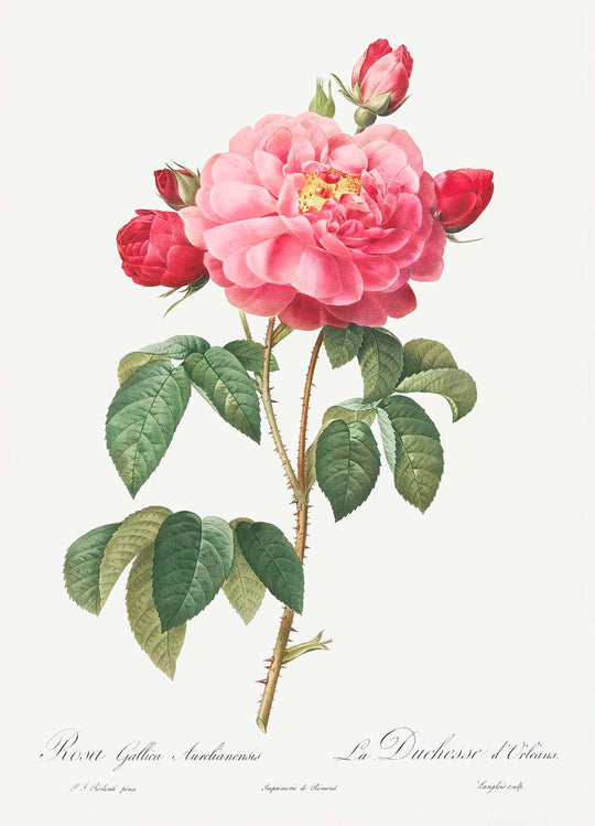 Gallic Rose, first published in 1817, is one of the finest and beautiful botanical paintings by Pierre-Joseph Redouté. Redouté spent much of his life painting the flowers of Château de Malmaison at the request of Josephine Bonaparte - General Napoléon's wife.