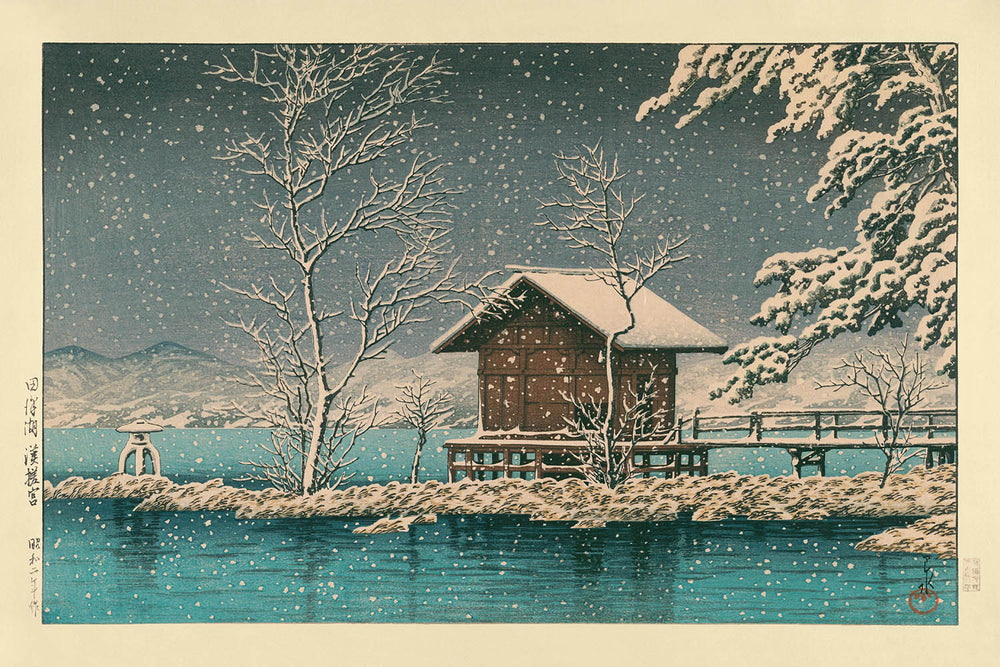 Kansagu Shrine at Lake Tawaza in the Snow by Hasui Kawase, 1935