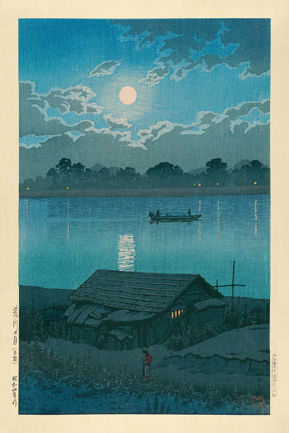 Moon over the Ara River at Akabane by Hasui Kawase, 1935