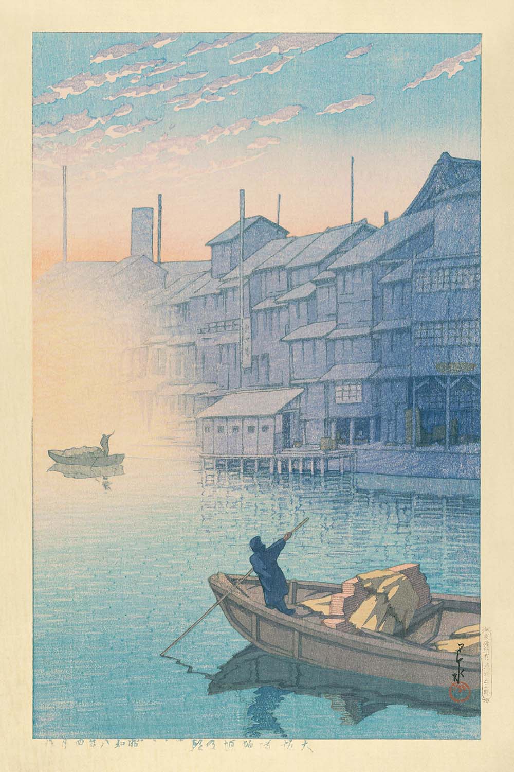 Morning at Dotonbori in Osaka by Hasui Kawase, 1935