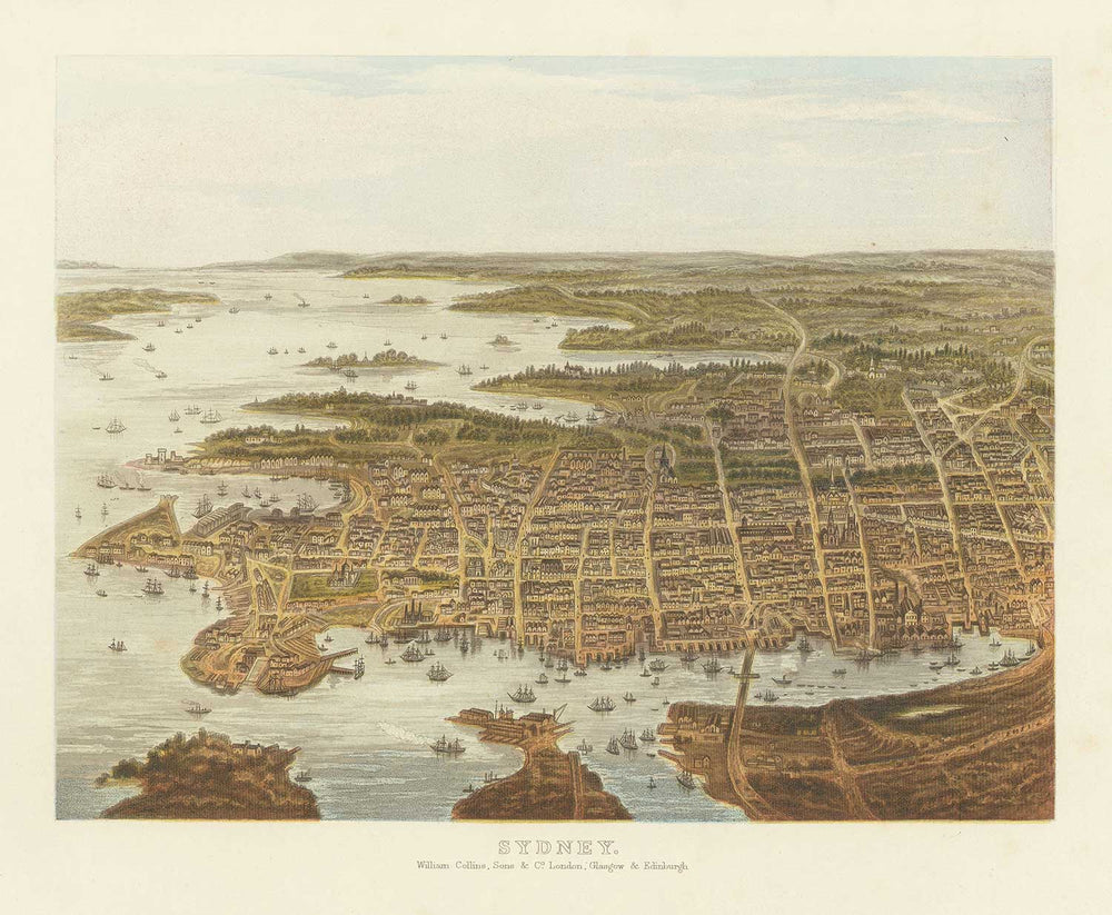 Old Bird Eye's View of Sydney in 1875 by William Collins: New South Wales, St George, Sutherland Shire, South, Inner West