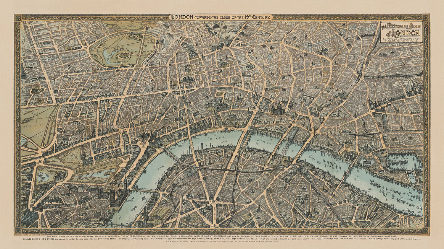 This wonderful old map of London was originally published in 1892. It was created by Charles Baker & Co.