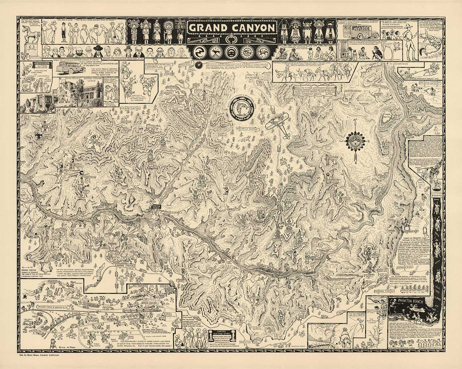 This wonderful old map of the Grand Canyon was originally published in 1931. It was created by Jo Mora.