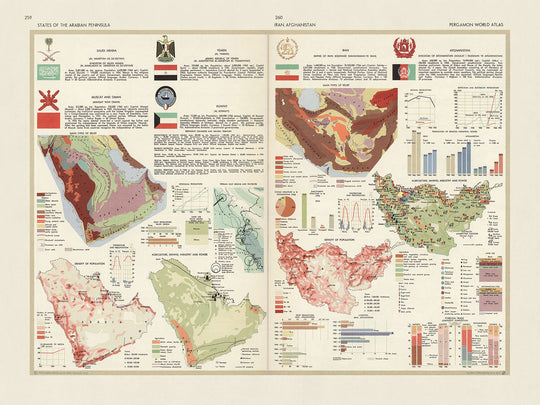 Old Infographic Map of the Arabian Peninsula: Agriculture, Land Use, and Population, 1967