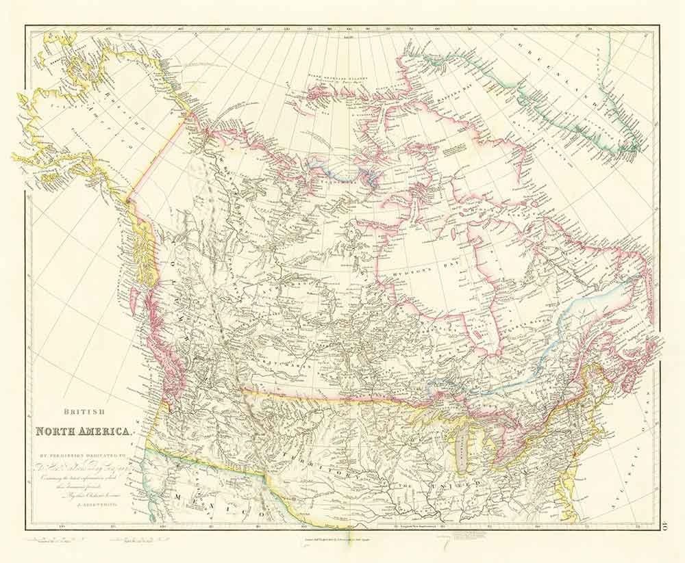 Old Map of Canada, 1840 by Arrowsmith: USA, Russian America, Upper & Lower Canada, British North America, Native & Indigenous People