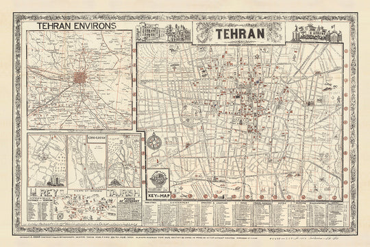 This beautiful and detailed map of Tehran by Sahab Abbas offers a fascinating glimpse into the city's past. Originally created in 1956, this map shows the city in great detail, with its many streets, neighborhoods, and landmarks clearly marked. Here are the five most significant things that are shown on this map: