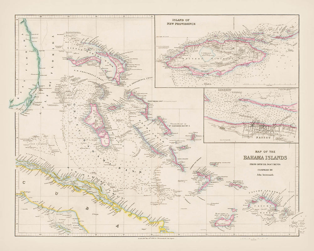 Old Map of The Bahamas by Arrowsmith, 1858: Nassau, New Providence, Channels, Banks, Coastlines