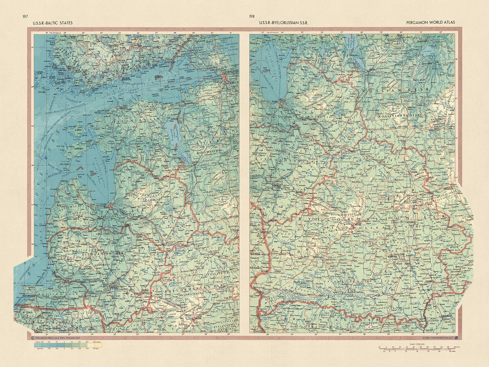 Old Map of the Baltic States and Belarus, 1967: Riga, Minsk, Vilnius, Gulf of Riga, Curonian Lagoon