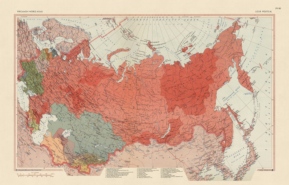 Old Map of the Soviet Union, 1967: Kazakhstan, Ukraine, Lithuania, Arctic Ocean, Cold War Geopolitics