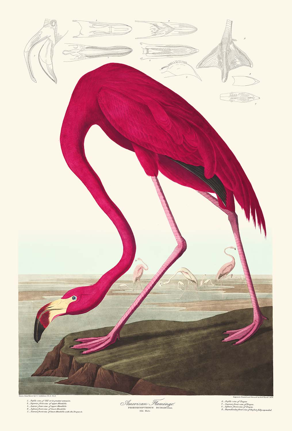 Observant naturalists will note that, while many of Audobon's birds were later renamed, the American flamingo (pelecanus erythrorhynchos) is already correctly labelled here, almost 200 years ago.