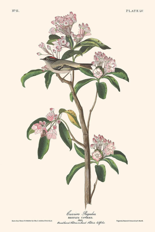 Cuvier's Kinglet stands out not only for its avian subject—at once delicate and elusive—but also for the vibrant palette and intricate detail that Audubon employed to capture this enigmatic species. The piece holds historical significance, reflecting Audubon’s broader achievements in both art and ornithology.