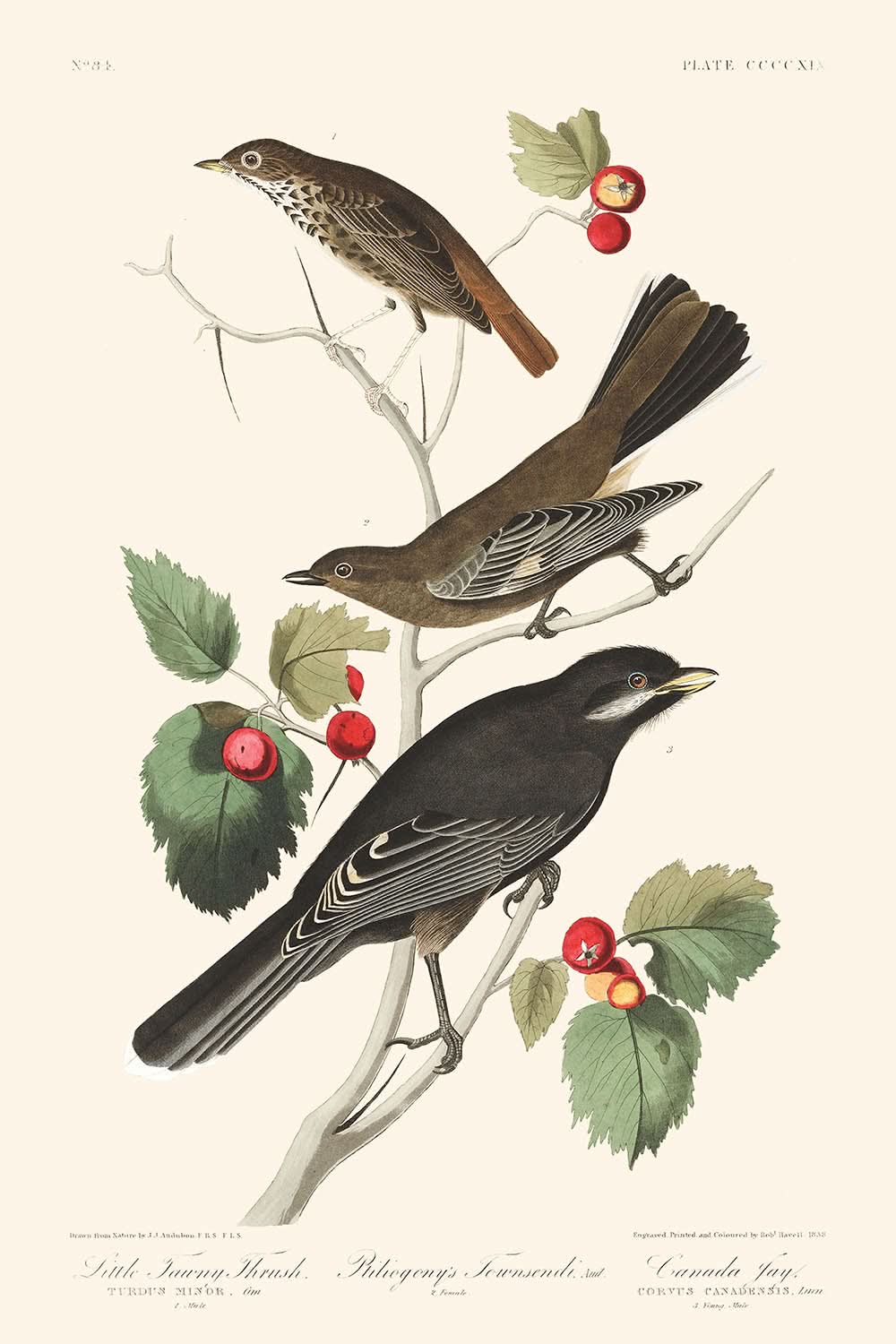 Little Tawny Thrush Ptiliogony's Townsendi Canada Jay by John James Audubon 1827
