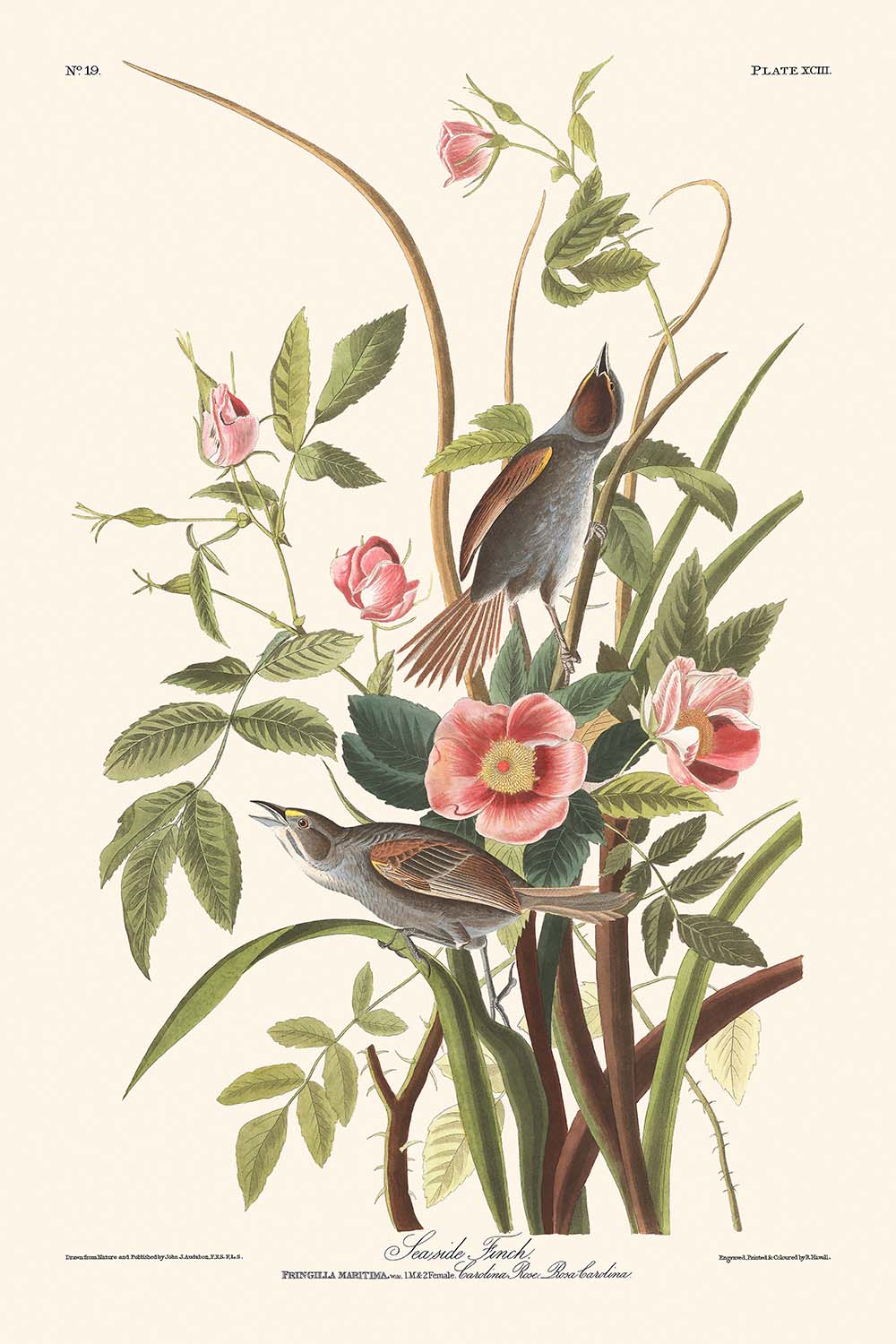 The Unique Maps Co. offers a high-quality fine art print of "Seaside Finch" that brings Audubon's classic avian illustrations to life. Your choice of acid-free archival paper or artist's cotton canvas ensures longevity and vibrancy, with sizes available to suit any space. Customization options, including elegant framing and personalized inscriptions, allow for a truly unique presentation.