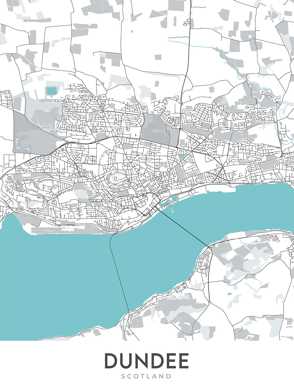 Introducing the exquisite "Dundee" map, a stunning portrayal of the vibrant Scottish city, meticulously crafted by The Unique Maps Co. in 2024. This modern city map offers a detailed, yet elegantly simplified view of Dundee, focusing on its intricate street layout without the distraction of labels. As you explore the map, you will notice the seamless blend of contemporary cartographic precision with artistic flair, creating a piece that is both informative and visually captivating. The map encompasses a diverse array of Dundee's neighborhoods, from the bustling City Centre and the historic West End to the serene outskirts near Broughty Ferry and Douglas.