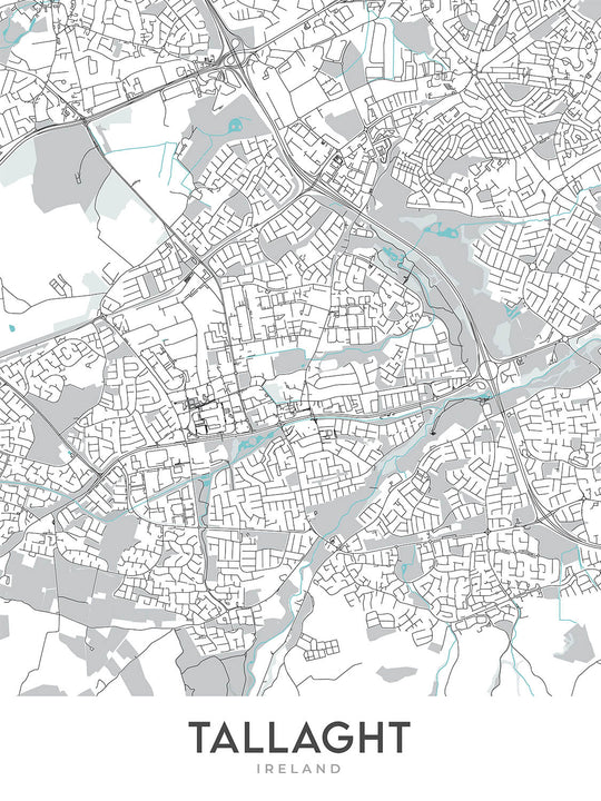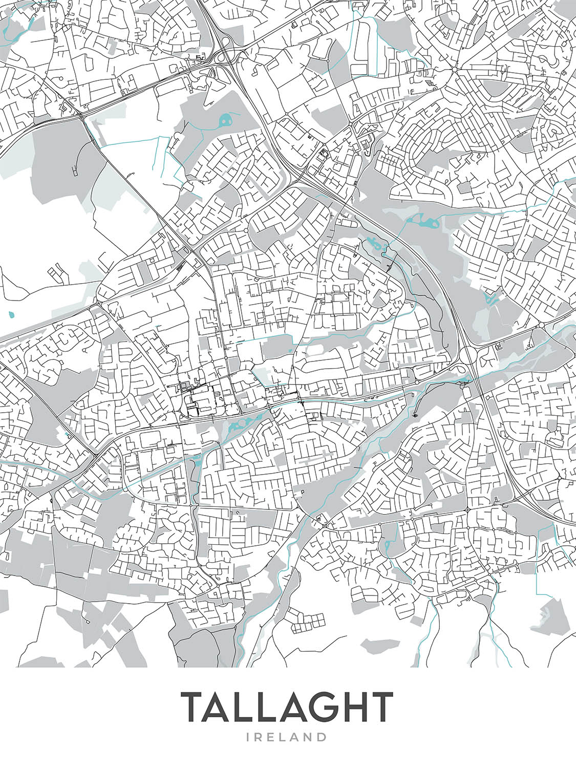 Overall, this map of Tallaght is a beautiful and informative work of art that would make a great addition to any home or office. It is a unique piece of cartography that will be admired by all who see it.