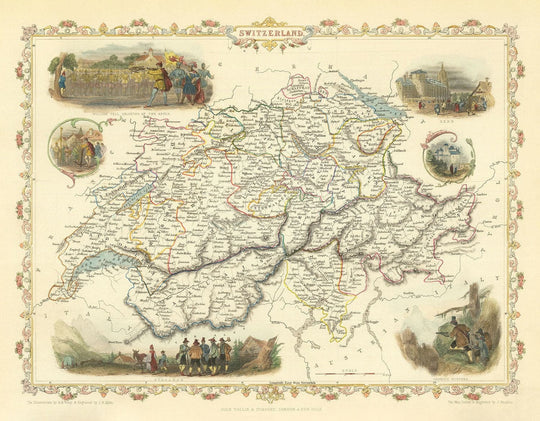 Engraved by John Rapkin and published by J. Tallis & Co in 1851, this is one of the finest and most detailed historic maps of Switzerland. This map was originally handcoloured more than 150 years ago and has been tactfully restored by The Unique Maps Co.
