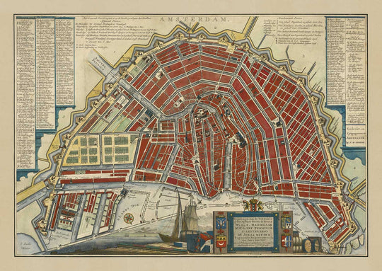 At the time the map was created, Amsterdam was a thriving trading city, and its port was one of the busiest in the world. The city was also known for its vibrant cultural scene, with many famous artists and writers calling Amsterdam home. Today, Amsterdam is still a popular tourist destination, known for its beautiful canals, historic architecture, and lively nightlife. The city is also a hub for business and innovation, with many tech startups and creative industries based in the city.