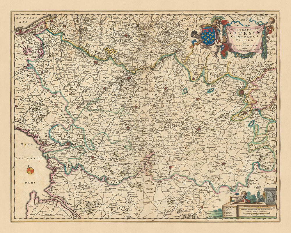Lastly, the map's creator, Nicolaes Visscher II, was a renowned cartographer from the Dutch Golden Age. The grandson of Claes Janszoon Visscher, Nicolaes II carried on the family tradition of producing high-quality, detailed maps. His skill and craftsmanship are evident in this piece, making it not only a useful tool for understanding the County of Artois but also a testament to the artistry of map-making during this period.