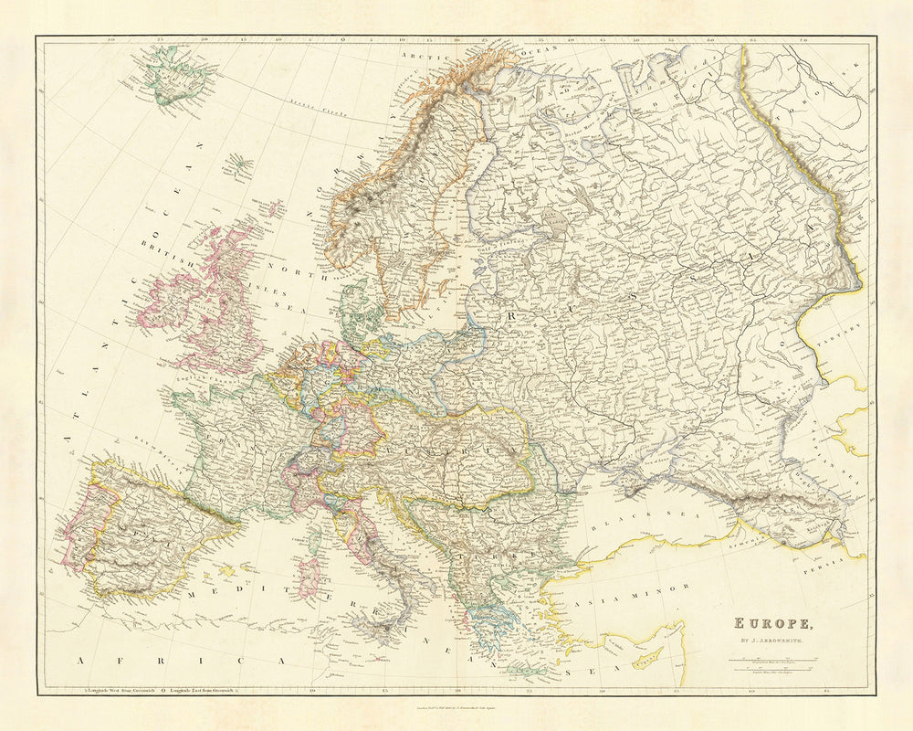 John Arrowsmith's "Europe" is more than just a map; it is a testament to the art of cartography, a historical record, and a piece of art. Its detailed depiction of the political and physical landscape of Europe, its historical context, and Arrowsmith's skillful cartography make it a valuable addition to any collection. Whether for a historian seeking insights into the past, a geographer studying the physical features of the continent, or an art enthusiast appreciating the beauty of cartography, this map offers something for everyone.