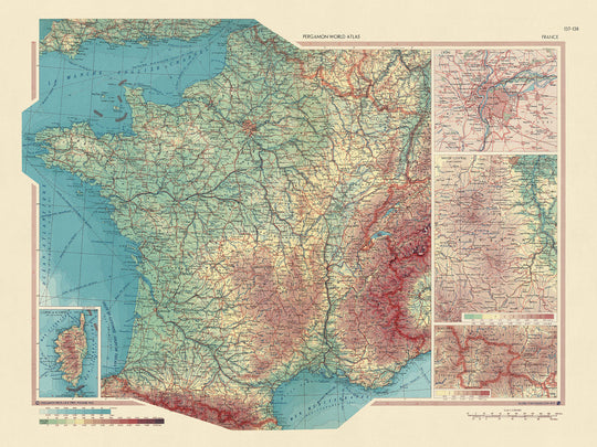 Old Map of France, 1967: Andorra, Massif Central, Lyon, Corsica, Detailed Political and Physical