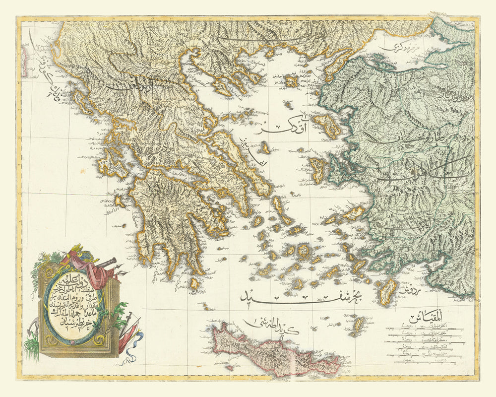 Old Arabic Map of Greece & Turkey, Raif Efendi, 1803: Athens, Crete, the Cyclades, the Ionian Islands, and the Peloponnese