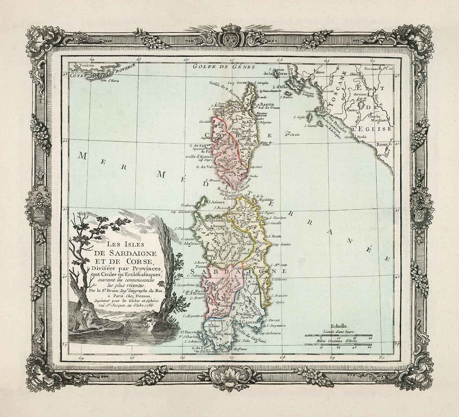 This wonderful old map of Sardinia and Corsica was originally published in 1786. It was created by Louis Charles Desnos.