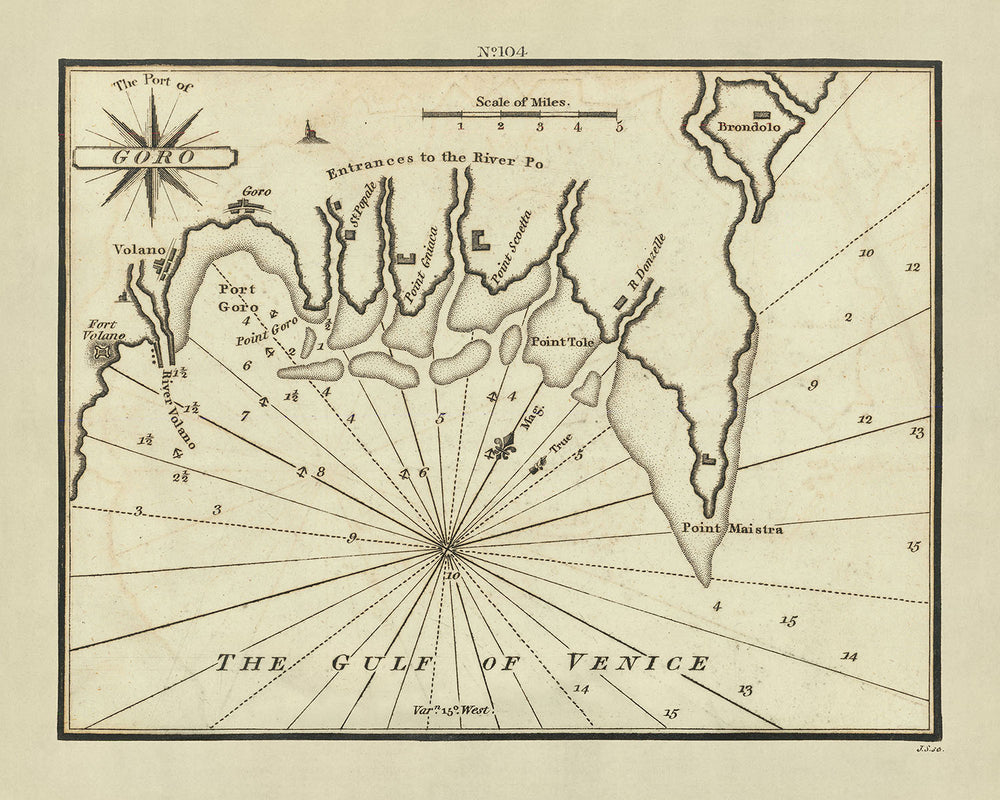 Old Port of Goro Nautical Chart by Heather, 1802: Po River, Fort Volano, Gulf of Venice