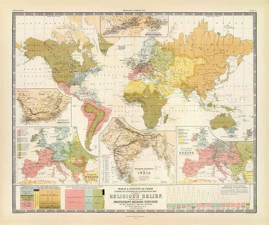 Old Religion World Map, 1854: Religious Beliefs in the 19th Century