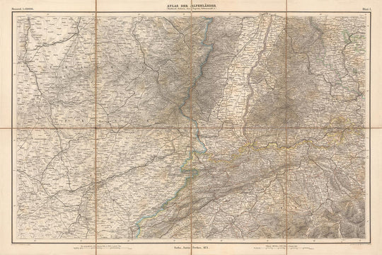 This map is not just a navigational tool but a work of art that tells the story of a region rich in history and natural wonders. It invites viewers to journey back in time and explore the Alpine countries as they were over a century ago. Whether you are a history buff, a geography enthusiast, or an art lover, the "Atlas der Alpenländer. Blatt I." is a remarkable piece that will captivate your imagination and enrich your understanding of the world.