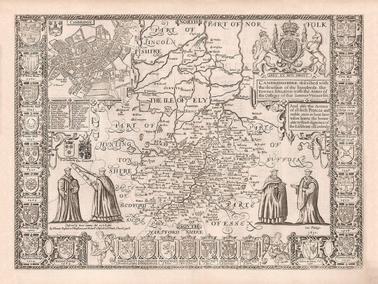 Old Map of Cambridgeshire, 1611 by John Speed: Cambridge, Peterborough, Wisbech
