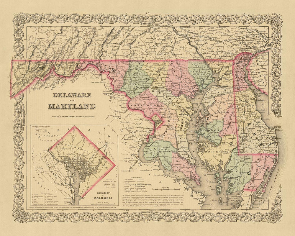 Whether you're a history enthusiast, a cartography aficionado, or simply someone who appreciates the beauty and craftsmanship of old maps, this piece is sure to be a cherished addition to your collection. It's not just a map; it's a piece of history, a work of art, and a conversation starter all rolled into one. This old map of Delaware, Maryland, and Washington D.C. by J.H. Colton is a treasure that offers a unique glimpse into the past, and a reminder of how far we've come.