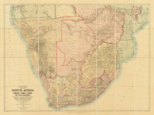 An incredibly detailed map of South and Central Africa, originally published in 1899 by Juta and Company in South Africa and Edward Stanford in London.