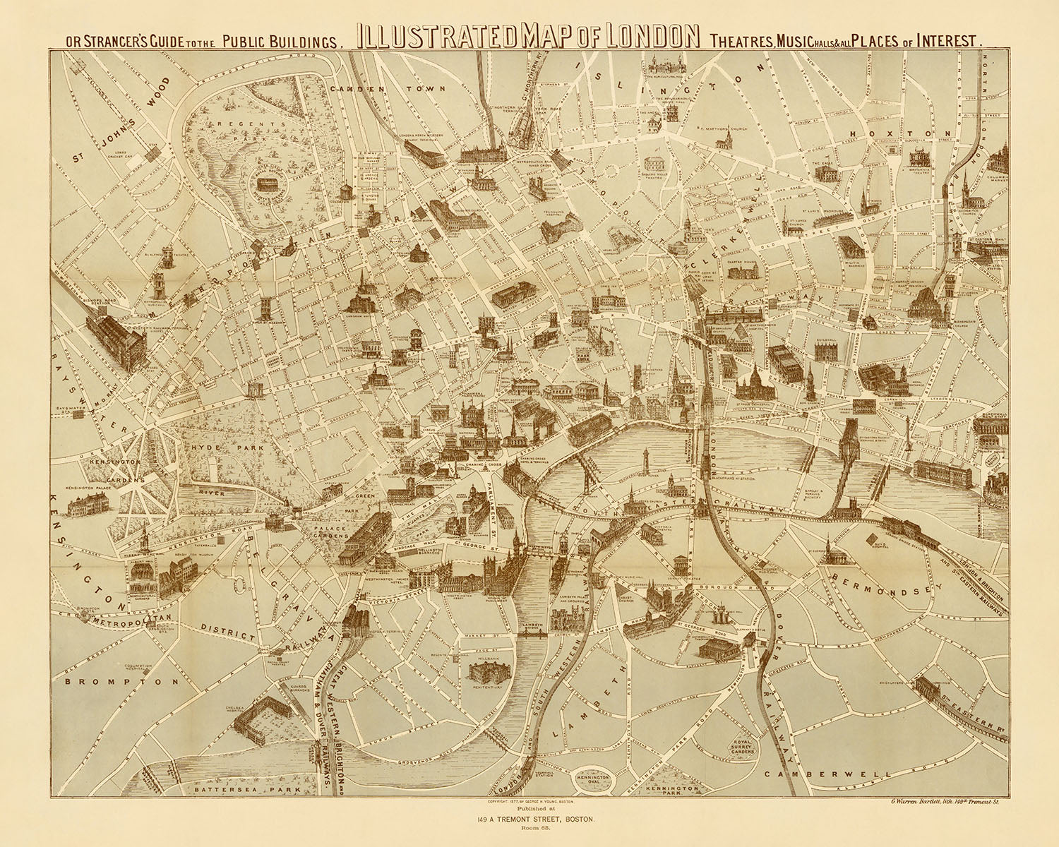 • The map is modeled after similar maps of Paris that were issued in the late 19th to the early 20th century for the 'Grand Tour' tourist market.
