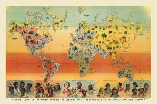 Climatic Chart of the World, 1893: Distribution of Human Races, Animals, and Vegetation by Yaggy