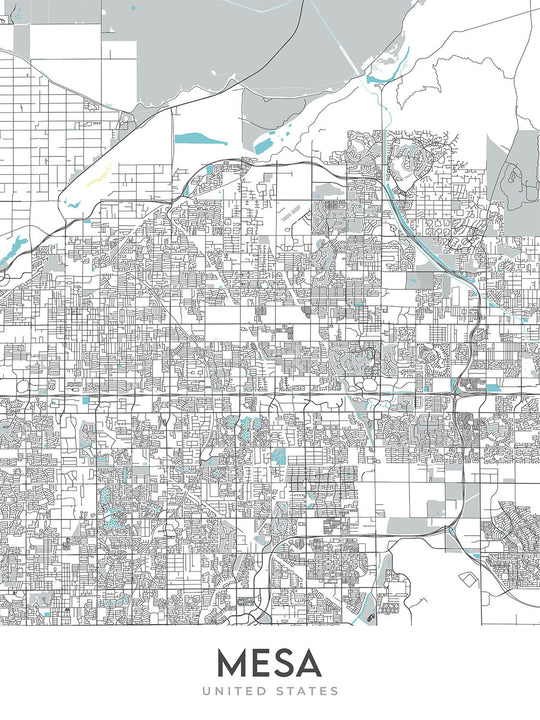 This map of Mesa, Arizona, is a modern marvel of cartography and design. It is a feast for the eyes, with its intricate details and vibrant colors. The map focuses on the city of Mesa and its surrounding areas, providing a comprehensive overview of this vibrant region. From the bustling downtown core to the quiet suburban neighborhoods, this map captures the essence of Mesa and its diverse landscape.