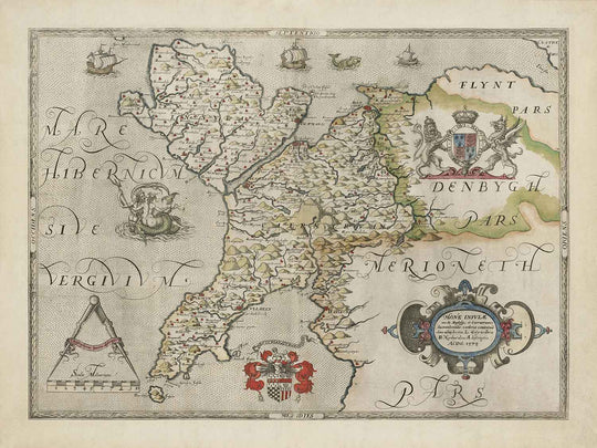 First Map of Anglesey & Gwynedd, 1577: Old Map by Christopher Saxton